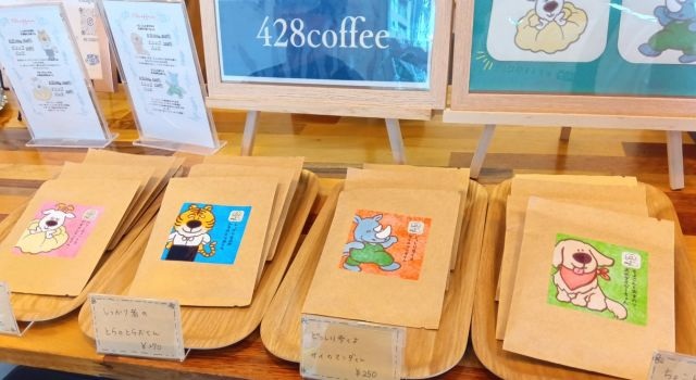 ところが428コーヒーでは、コロンビア、ブラジル、キリマンジャロなど豆の種類ではなく、複数のコーヒー豆をブレンドして、それぞれ動物の名前を冠したコーヒーにしています。