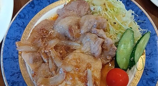 大ぶりにきった豚肉に生姜が載り、玉ねぎも多く和えられています。