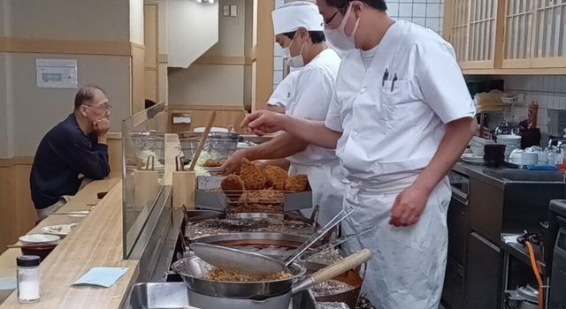 とんかつ山家では、カウンター越しに職人さんがとんかつを揚げる様子間近に見ることができて、おいしいものを作る現場の臨場感が伝わってきます。