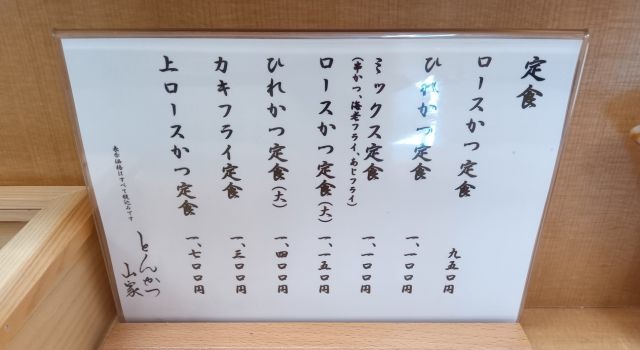 とんかつ山家のメニュー見てみます。